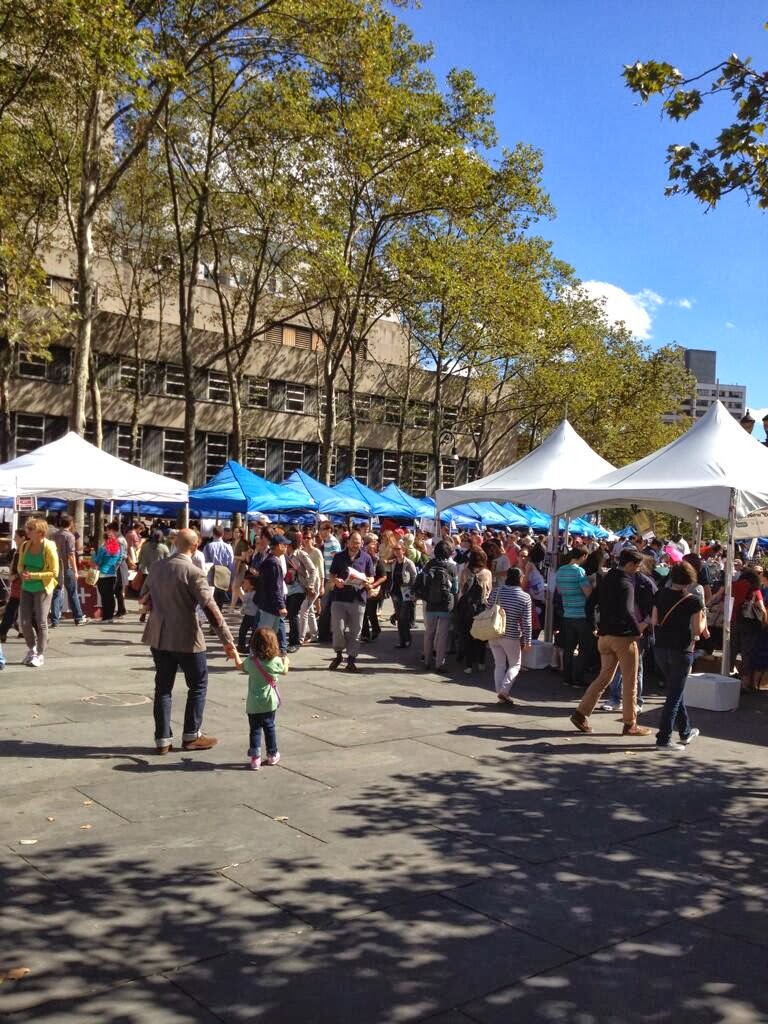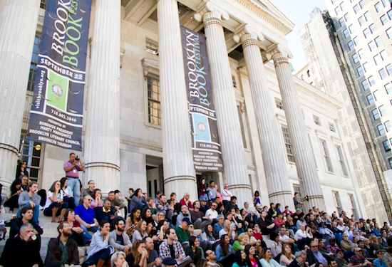 New York City's largest free literary event offered a long list of lectures, conversations and presentations at fourteen different locations. Sunday afternoon presentations included famous authors with Brooklyn connections, such as Edwidge Danticat, Pete Hamill, Colum McCann, Art Spiegelman and George Packer. More than 45,000 people attended the festival, and 200 stalls sprawled across three blocks in the heart of downtown Brooklyn, representing a cross-section of independent bookstores, independent presses and magazines. At times, the crowd was so packed it was difficult to move.