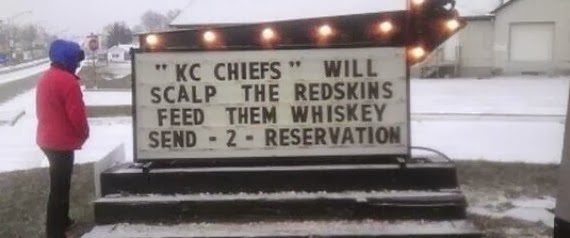 RESPONSES TO COMMENTS:Denise, I don't believe that about the owner being a chief petty officer in the Navy and the sign referring to that. These racists always have to try to have some explanation, no matter how farfetched or lame it is. The whole thing was directed at Indigenous folks and referenced a number of denigrating stereotypes that are actually laughing references to the genocide our folks endured. Thank you for bringing this film issue to my attention. We need to stay on top of these things.