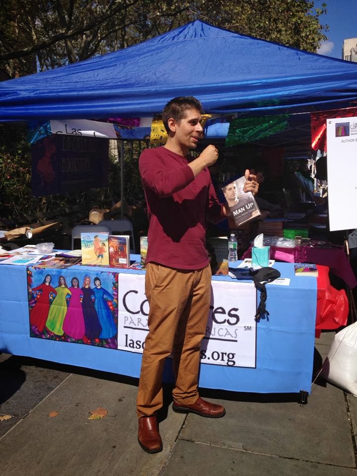 As Nora played emcee, many other festival attendees stopped and gathered around to hear the reading, which Carlos Andrés Gómez kicked off with a brief discussion about his memoir,
