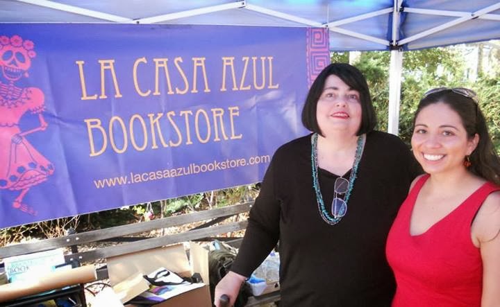 Soon enough, we headed back to the huge square full of vendors’ booths where both Sergio and I were to read at the Las Comadres/La Casa Azul Bookstore booth. The festival was so full of attendees (over 45,000) that, at times, it was hard to move around freely, but eventually we got to our destination. This reading had been organized by two dynamic women who are doing wonderful things for Latino literature—Nora Comstock of Las Comadres National Latino Book Club and Aurora Anaya-Cerda of La Casa Azul Bookstore. They had collected a terrific group of writers to read—Carlos Andrés Gómez, Tim Z. Hernandez, Lulu Delacre, Sergio, and me. Also gathered there were supporters of Las Comadres, La Casa Azul, and us individual writers, plus the amazing writer and activist, Rich Villar. It was a delight to see Rich again, since the last time we’d met had been at AWP in Boston in March.