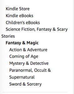 I quickly realized I didn’t know as much about fantasy and science fiction genres as I thought, especially for children and YA. When you’re setting up a book on the Kindle Digital Publishing Program (KDP) or Createspace, both Amazon services, you may choose two categories for your book, and then later ask support to add additional categories. The categories will determine your competition and your access to the correct readers.