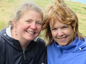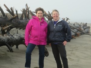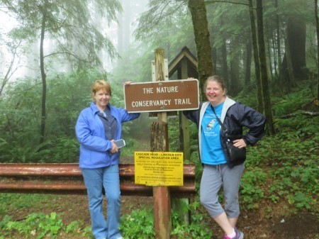 Carol Gorman and Dori Butler at trailhead of Nature Conservancy Cascade Head trail, outside Lincoln City, OR.