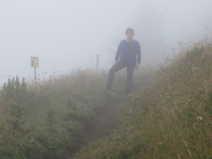 You may not know when you reach the top. Because of the fog, we weren’t sure what we were supposed to see and where we were supposed to go to see it. We reached a pasture and thought it was supposed to be the top, but we didn’t know. Sometimes, in our writing careers, we reach a certain point and look around, only to be puzzled. Is this the top? Why can’t we see any clearer?