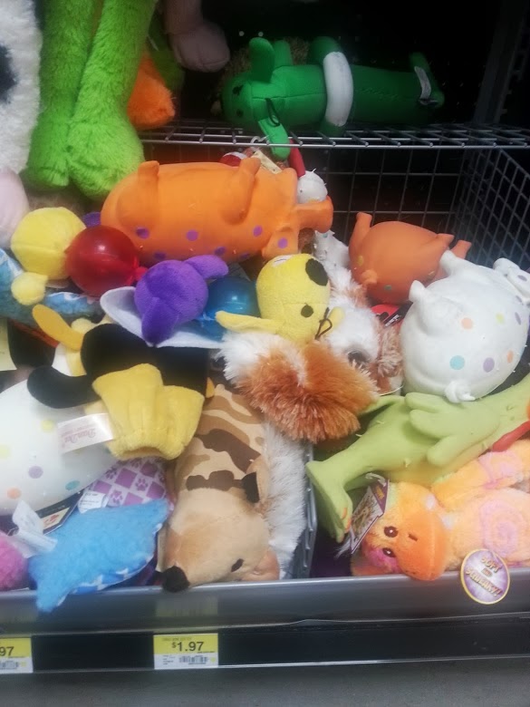 This morning I needed to get a few more items for my dog. This time, armed with my camera phone I took pictures off the products I wanted. One picture was of the entire area and the other was of the price where it was listed before I grabbed the item. At the register is where my plan of action came into play.Two items, that I already know the price of and the listed price was WAY off the mark. Let’s start with the dog toys. The pigs you see in the picture cost about $5 total with tax. Clearly you can see more than one in the picture in a bin marked $1.97. I got two of the four in the picture shown. There were actually a total of eight in the bin.Next is the metal post that screws into the ground. That post alone is about $8. Add the cable that comes with it and the cost is $11. Clearly you can see it’s thrown under a price of $3.50. There are more than one visible on that hanger. On a hanger above it and to the left side of that hanger is more post with cables under price tags of $3.50.