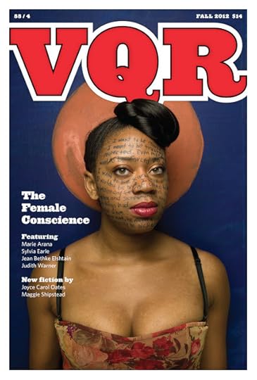 I have four poems from my current manuscript in the Fall 2012 Virginia Quarterly Review, themed "The Female Conscience." It took a minute, amidst all the travels, for me to get to sit down and read this gorgeous issue. But now I have, and I'm so impressed (honored) to be included. Highlights, a.k.a. an annotated TOC: