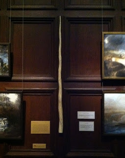 Lookee here!I was delighted to spot a narwhal tusk on the wall of the Folger Shakespeare Library's Great Hall--part of their "Very Like a Whale" exhibit, on display through January 6. I am quite fond of narwhals; not on the scale of capybaras, maybe, but close. Like capybaras, they make a cameo in a poem of mine, "The Editor of the Encyclopedia Britannica Regrets Everything," which was nominated for a Pushcart Prize by Black Warrior Review way back when, as part of the chapbook "Bitch and Brew: Sestinas."