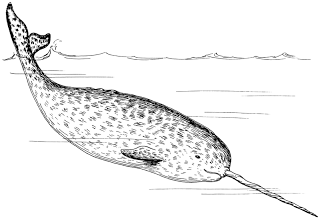 Nar is old Norse for corpse; Scandinavians named this arctic whale the “narwhal” because its gray, mottled body resembled that of a drowned sailor. Inuit myth claims the creature originated when a wicked woman, tricked into anchoring her son’s hunting line, was dragged into sea by a harpooned beluga. In her dying struggle, the harpoon’s shaft tangled in her hair and fused to her spirit-self, forming the narwhal.