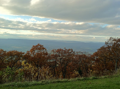 We made our way home via Skyline Drive, staying at the Skyland Resort before wandering all the way up to Front Royal. The temperature was a good 30 degrees lower than down south. On went the socks, on went the coats. We listened to bluegrass instead of blues (with a little Django Reinhardt that I'd picked up in Atlanta mixed in for good measure). Instead of BBQ-dusted potato chips, we snacked on honey-roasted peanuts. We chose darker beers instead of Red Stripe, the red wine over the white. Instead of cotton, my eye was drawn to the orange leaves like handfuls of flame.