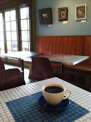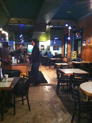 Kalamazoo is an ace town for coffeeshops. Here is a glimpse of the 24-hour-open Fourth Coast (which refers to the coast of Lake Michigan, in case you're wondering). After a welcome-to-town lunch with my host, the poet Traci Brimhall, I spent my Friday afternoon here--and got 1,000 words written of an essay I've been mulling over for months. Creativity upon arrival is always a good omen.
