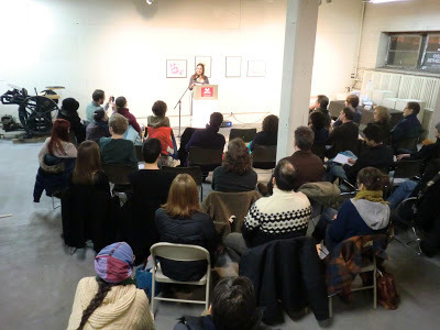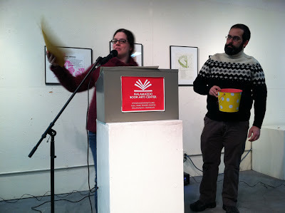 By the time we got back to Kalamazoo, we had only an hour to warm up and change for our reading at the Kalamazoo Center for Book Arts. Great crowd--almost 40 people--including some folks I had written to over the years, or known as fellow New Issues poets, or published in Folio, but had never met in person.