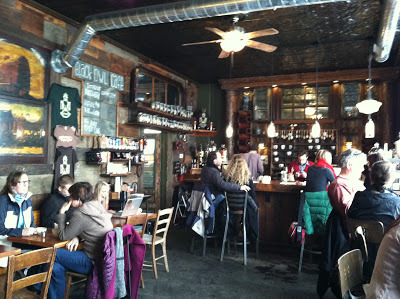 By the time we left Bell's the snow was coming down. We made a quick pit stop at the aptly named Beer and Skittles; I picked up one last Michigan beer, New Holland's "The Poet" Oatmeal Stout. Jon dropped me off at Water Street's Oakland location--where chairs are luxurious and KBAC broadsides are on display--to head home with Marianne, where we spent a few hours talking before deep sleep (part one; "deep sleep, part two" took place at the aforementioned library, where Marianne now works).