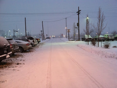 Afterwards my other host, Jon, picked me up for dinner and a trek to Louie's Trophy Grill, which features very large game animals on the walls. We saw three guys and their bartender do a shotski--four shot glasses mounted in a ski for simultaneous drinking. I could have gotten in on the action had there not been sour mix in the shots. Foiled! Afterward a slight mis-Google-directioning landed us in, um, Galesburg. I got back to Traci's at 1 AM; the poor, brave poet had to stand outside in her socks so I could find their apartment amidst the identical rows of snow-covered buildings.