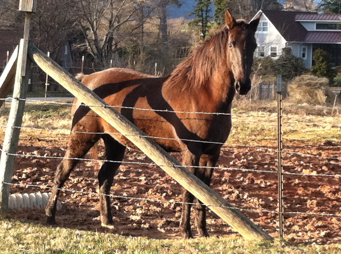My favorite artist left Virginia Center for Creative Arts today; the one who arrived right after I did, the one who quickly proved himself a fellow scotch drinker. On his way out, he stopped to feed the horses with an apple he'd taken from his first day's lunch buffet but had remained, untouched, on his studio windowsill. The owner of the horses that roam VCCA's grounds, a young Sweet Briar graduate named Virginia, was kind enough to come to my joint poetry reading with another Fellow. We were chatting afterwards and Virginia confessed that this horse's name on the paperwork is Pure Black Poison. She calls him Fella instead.