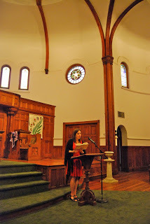 In a moment of bravado, my parents drove down to make a weekend getaway out of it. The three of us prowled the old graveyard before the reading, headstone by headstone. We stepped into the church and I gasped. It was gorgeous. As I later admitted, there were a handful of poems--"Drunk," "In the Deep"--I dropped from my set list on the spot, fearful of blasphemy.