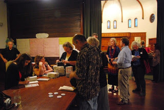 That's Katrina sitting beside me as I sign books. She's talking to Susan, who brought us back to her house for a dinner of roast chicken and asparagus. I can't remember another time someone home-hosted and didn't blink at all my food allergies. A small group of us stayed up late into the night, talking life and poetry over gin & tonics. Heaven. This is why poets tour: these moments of stumbling into a community you could call home.