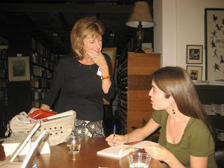 I was thrilled to see Katrina again, and she had worked with Brit (pictured holding the cake above) to set a Sandra-friendly table for the reception: almonds, grapes, vegetables and hummus, right down to crackers with no egg or milk. Though I hadn't read any "Allergy Girl" poems, one woman bought Don't Kill the Birthday Girl for her allergic grandson. We joked about the resoundingly pink cover.