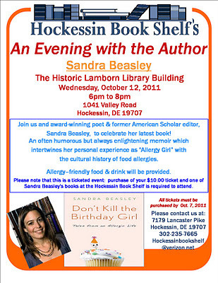 Join Sandra Beasley for a reading from her memoir, Don't Kill the Birthday Girl: Tale from an Allergic Life Sunday, September 11 ~ 4 PMChop Suey Books2913 West Cary StreetFree & open to the public
