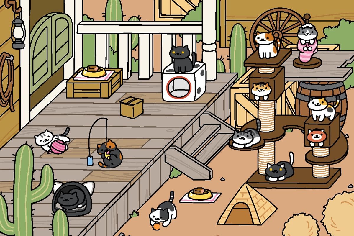 Since I didn't want to create an utterly morose atmosphere, I found another way to think about excess: Neko Atsume, the Japanese mobile game of cat collecting. There's a calming quality to cats en masse, even though on another level it's creepy; this resonates with anyone who has been to an island where the feral cat population has surged. I offered a few screenshots toying with the game's premise and outcomes.