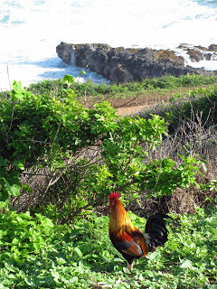 The hurricanes of '82 and '92 liberated roosters from the farms. They now roam free, cawing at all hours, the prettiest pests you have ever seen.