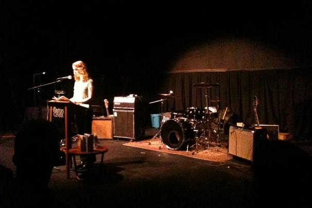 But putting underground rock music in a dimly lit auditorium, where a seated, presumably sober audience awaits their performance — now that's dignified. And we haven't even gotten to the poetry part yet.