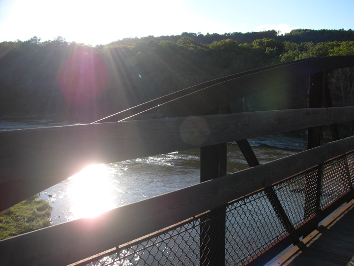 Later, we stopped off in the small town of Ohiopyle. We watched the sun ebb over the Youghiogheny River. We ordered a couple of local-brew Troeg's Sunshine Pilsners, which were served to us in mason jars straight out of the freezer. I was introduced to the concept of "French fry salad," which is apparently a concoction native to the Allegheny part of Pennsylvania. Happiness.