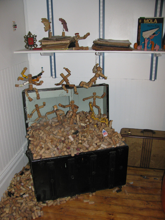 The three-story Lodge, which has uneven stairs, squeaky floors, a demonic resident cat named Toots, and a lot of charm, doubles as Dave's house. Dave--an incredibly talented puppeteer and artist in his own right--has generously turned his space into an artist-residency, meaning there was plenty of amazing work on display, both his and that of others. Like cork people.