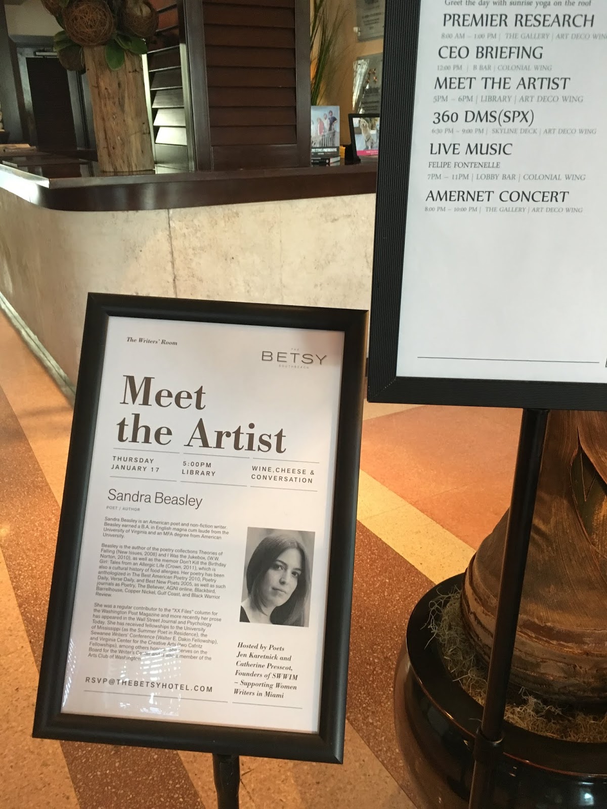 In Miami, I had a brief residency at The Betsy. The Writer's Room program is amazing (in return for a reading and a meet-the-artist reception, they give you a place to stay and a $50 / day tab at their restaurants). That said, one has to get past the strangeness of the entire staff knowing who you are and why you're there. SWWIM was kind enough to host our reading, where I finally got to meet Vinegar and Char contributor Elisa Albo. (Have you signed up for SWWIM's daily poem? You should!) I read four books in two days--Jessica Hopper's Night Moves, David Menconi's Ryan Adams: Losering, a Story of Whiskeytown, Alexander Chee's How to Write an Autobiographical Novel, and Porochista Khakpour's Sick--lounging whenever I could by the Betsy's rooftop pool. I checked into a cat cafe for an hour. And I walked down to the South Pointe Park, a walk that brought me comfort so many days back when I was living in Miami in February 2011, as part of a now-defunct artist residency. I'm working on my next nonfiction book, and this was the perfect setting. But that's all I'll say about that for now.