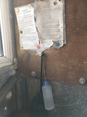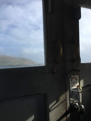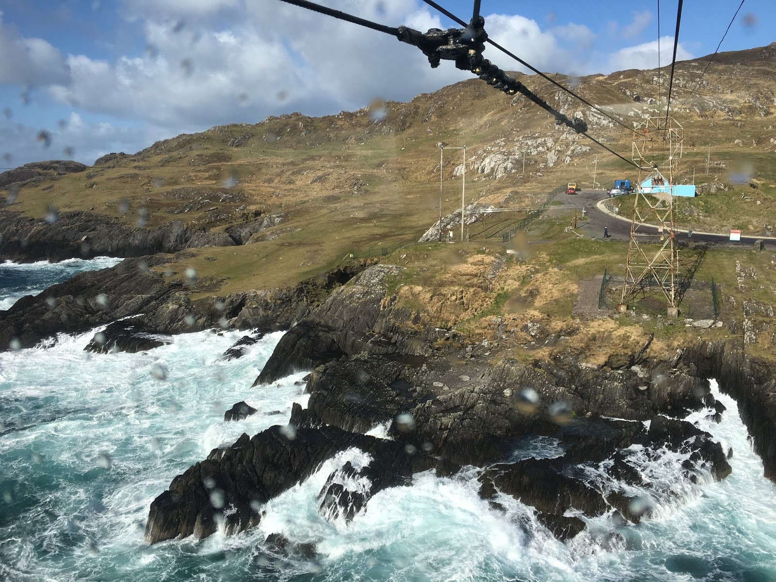 Ireland's only cable car runs to Dursey Island. The door is secured with a latch. Emergency supplies consist of a two-way radio and a bottle of holy water.