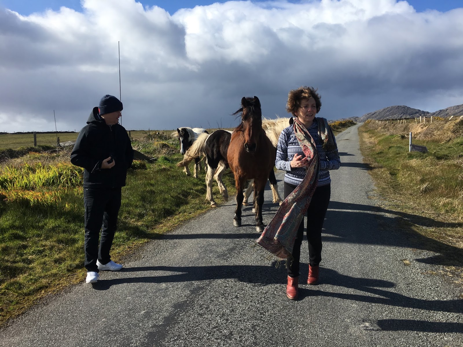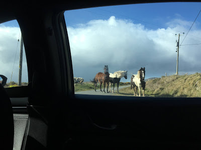 We made what should have been a quick stop to see the (purported) shrine to the children of Lir, only to be gently waylaid by a pack of horses that had gotten loose.