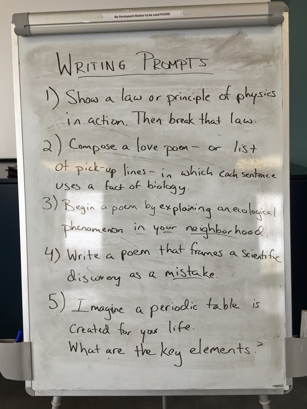 On Thursdays and Fridays, I have two-hour one-on-one sessions with poets in the community, who I chose based on applications with work samples and project statements. These are a different space, chatty and collegial, but at the same time I can really push on individual needs and risks to be taken. Although I orchestrate readings for each given week, I don't try to do written feedback--they simply leave with the notes they've taken during our conversations. I'm struck by how energized I am by a model where each week holds six hours of "live" teaching paired with two hours spent on notes and prep, versus what is usually the opposite ratio.