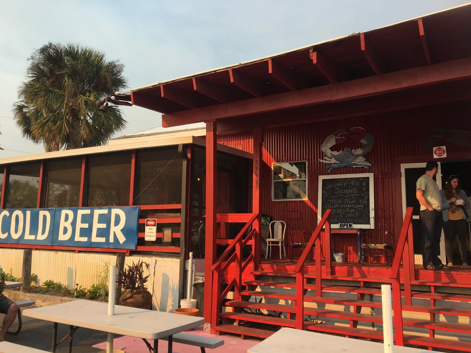If you happen to be making your way from Naples to Miami, you'll be driving through the Everglades and I highly recommend you stop off at Joanie's. They took good care of me, allergies and all, from the lima bean soup to the fresh-grilled grouper atop salsa made that morning and a salad dotted with tiny flowers that had been grown in the cafe's front yard. I also had a moment during a rest stop when a crowd looked at me funny, as I walked along talking on my cell phone. So I turned back and looked--I'd passed right by an alligator. He was too sleepy to notice me.