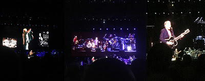 On Friday (September 14), I was gathered with a whole lot of DC-area folks at the downtown arena to hear Paul Simon's "Homeward Bound" farewell tour. He was great. The opening reworking of "Fifty Ways to Leave Your Lover" had a haphazard rhythm that had me a little worried, but it turned out to just be a huge spread of musicians--including a self-contained chamber group, yMusic --getting used to the stage and to each other. Their collaboration on a reworking of "Rene and Georgette Magritte With Their Dog After the War," which is on the new In the Blue Light album, was a highlight, as was all the Graceland material. Simon's vocals were by turns jaunty and weightless. We were on the floor, and it took real effort to train my eyes on the actual person versus the projected scene (compare the concert pic tableau on the left, above, to the detail of the actual Paul Simon below).