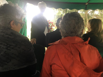 The photograph I want is the one I don't have: a shot from behind of my mother, sitting in line with her brother and sister, facing the arrangement of my grandmother's ashes prior to the beginning of the service, and beyond them the cornfields that line the cemetery. We sat two rows behind and I thought I should capture this moment, these three siblings, but then I wasn't sure about camera etiquette at a funeral. Family sat down in the row between us and the moment was gone. I captured the moment after instead, as my aunt stood to face us and speak. Maybe Roland Barthes would say that the true punctum is in this second image, this motion, imperfect as it may be.