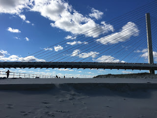 I was going to tell you that I then headed to Delaware's Seashore State Park, and for three nights shacked up in a cabin by the Indian River with Leslie, workshopping with eleven poets while she workshopped with eleven prose writers. The boats harbored in the marina rocked and squealed. We had morning seminars on topics such as working from autobiography, giving a good reading, and radical revision. We finished with an open mic. The students gave us each a brown paper bag full of thank-you notes. I was going to tell you that I made time for walking on the beach barefoot.