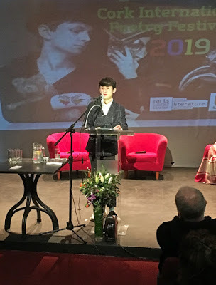 Strange to navigate the busy waters of the Cork International Poetry Festival, and then the very next week--from a distance, via social media--watch writers navigate the even busier waters of the AWP Conference in Portland, Oregon. I managed to photograph every reader I saw in the Cork Arts Theater, except for closing night when my phone died. (Note that this happened mid-email. So I spent an agonizing twenty minutes wondering if I was standing up Kim Addonizio. Luckily, she got the message and made her way to Cask to meet up for dinner.) The downside of the phone dying is that I can't show you Kim's awesome shoes, or the sweet interplay between Billy Collins and Leanne O'Sullivan, a rising star of Irish poetry who had received the Farmgate Café National Poetry Award earlier in the week. The upside is that I was able to relax and fully inhabit those moments.