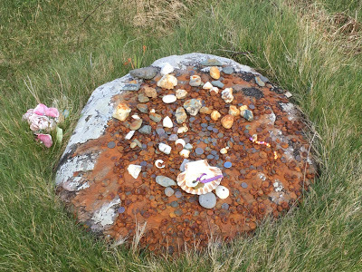 A small bit of signage helped us understand what we were seeing: the circle of seventeen stones oriented toward the midwinter solstice's setting sun, with a center where an urn with cremated bones had been recovered, dated to somewhere between 153 BC and 127 AD. Nearby, the remains of two small huts, plus a hearth and trough where water would have been heated by dropping in stones heated by fire.