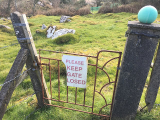 A new day, a new gate to open--this time to see a stone with an ogham inscription, a primitive form of Irish writing.