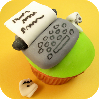 Sometimes you get really lucky--your rockstar baking friends dedicate typewriter fondant in your name. Thanks, Meaghan! (That's her image, to the left, (c) Meaghan Mountford.)