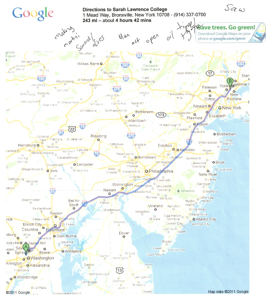 First, scribblings during a long road trip to visit Sarah Lawrence. (The future founding editors of Pelorus were in that class, which belonged to Jeffrey McDaniel.)