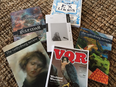 -I give myself permission to leaf through, to skim, rather than reading everything. But when I find something I particularly love--an essay, poem, or short story--I flag it. The goal is to find one piece per issue, two max. Then I use the Contributor's Notes to find an email address for each of the authors. Sometimes this isn't possible, but there is usually an academic or other professional affiliation mentioned.