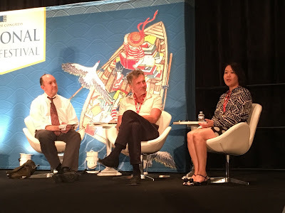 Our last program of the day was spur-of-the-moment--Michael Cunningham and Yuko Shimizu, with my friend and Washington Post Magazine editor David Rowell moderating. Shimizu designed this year's NBF poster, and the two collaborated on Cunningham's reworking of fable and myth, A Wild Swan and Other Tales; a hypnotizing slideshow of illustrations cycled on a screen to the side of the stage. The conversation was lively, and for a writer married to an artist, it was the perfect date-night note to end on. (To be precise, the "date night" then extended to mezcal cocktails, guacamole, and ceviche at Espita Mezcaleria, two blocks up 9th Street.)