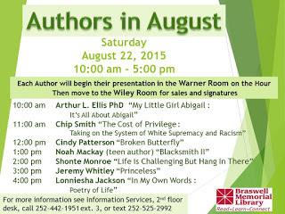 Rocky Mount, NC 27804I'll be there at 12 noon ... to say a "few words" ... and sign some books and spend some time with all who come out. Hope to see you there!