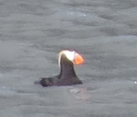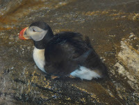 Tufted Puffin (Alaska)Puffins are tiny and elusive and hard to photograph. Although we saw some in Alaska, this is the best photo I could get. I had hoped to see many in Iceland but Hurricane Harvey canceled that trip so I have to be satisfied for now with my far off sighting. Some aquariums, including Biodome in Montreal, have puffins, like the one I was able to photograph in captivity (but that doesn't count for birders). Still, they are interesting to watch up close.