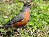American RobinThe birds covered are the American Robin, Blue Jay, Carolina Chickadee, Ruby-throated Hummingbird, Downy Woodpecker, Northern Mockingbird, Red-Winged Blackbird, Eastern Bluebird, Brown Pelican, Great Horned Owl, American Crow, Canada Goose, and Northern Cardinal. While several are found across North America, a few will be unfamiliar in some areas or are migratory visitors. This book doesn't take the place of a field guide but serves to introduce the birds, and the crisp photographs provide a good up-close view that will greatly help with identification in the wild. Additionally, most of the birds are ones that can be easily seen in backyards and fields.