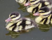 Whistling duck chicksWhile not the type of duck pictured in Swim, Duck, Swim! some of my favorite ducklings are the Black-bellied Whistling ducks. Found primarily in Texas and Louisiana, these ducks really do whistle. As they fly overhead you will hear them!