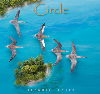 Although I overlooked it on my first reading, an author's note and map are appended. Therein, Baker explains the importance of wetlands for these and other waterbirds and the map identifies the areas and countries where the bar-tailed godwits go during migration. There is also a list of the other migrating creatures that careful readers can search for in the book. Circle is a great book for sharing with budding birders, especially those who live near the shores or wetlands. Pair it with Moonbird by Phillip Hoose for older readers, about a red knot that has flown enough miles to go to the moon and back.