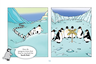 The second book, A Goofy Guide to Penguins by Jean-Luc Coudray & Philippe Coudray is also a level one reader but focuses on those silly looking birds that live in the southern hemisphere. The only penguins in the book are from the South Pole and the "guide" is filled with more fun and jokes than actual true facts. (“Why do penguins need a diving board? To break the ice!”) They are silly birds and a double page spread at the end clues readers in on the "100% genuine, real facts. So while readers won't learn asmuch about penguins as they did about pigeons in McCloskey's book, penguin fans will love the comic illustrations and silliness.