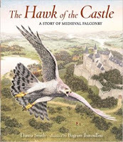 Hawk of the Castle is a sophisticated picture book that follows a young girl as her father trains the bird of prey that lives in their castle. The story line is featured on one page, with each short stanza ending in "castle" to create a lyrical pace. Inset boxes provide factual details about the birds, the time period, and hunting with falcons and hawks on the opposite page. Beautiful realistic illustrations have the feel of architectural renderings. A two-page author's note explains that the author's father was a falconer and provides some history of falconry from China and the Middle Ages to the present. Suggestions for further reading for both children and adults, along with appropriate websites, provide for additional information on falconry. This is a fine example of informational picture books that are intended for older children and adults to enjoy.