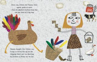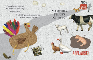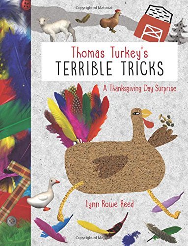 After all of the other turkeys on Felicia's farm have disappeared, Thomas is afraid he is about to become Thanksgiving dinner. To distract the farmer from adding him to the meal, Thomas resorts to tricks and enlists the help of his barnyard friends to drive the Felicia away from the farm. Reed's art is whimsical and a little quirky, almost childlike, and very colorful. The humor in Thomas Turkey's Terrible Tricks, and the ingenious animals, will appeal to readers who love Click, Clack, Moo: Cows That Type by Doreen Cronin.After being out of print for several years, Lynn Rowe Reed is reissuing a new version of her Thanksgiving book. The art work was totally redone for Thomas Turkey's Terrible Tricks but the text is virtually the same as in Thelonius Turkey Lives! Although Thomas is a domesticated turkey, readers do learn a bit about the bird in Reed's story. One reason I especially like the story is that it has a compassionate ending. Jim and I are vegetarians. I stopped eating birds when after someone pointed out that we kill a million birds a day; but we call them chicken or turkey. We haven't eaten turkey at Thanksgiving in over 25 year so it's great to find a book that shares what we know:it's the friends and the side dishes that really make the meal special!