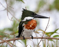 Amazon Kingfisher (Photo used under Creative Commons license.)Not having the money, time, or "fire in the belly" to do a Big Year, I do still admit to feeling the lure of an exotic species that has shown up when I see posts on the Rare Bird Alert sites (see below). Could I rush down to the Rio Grande Valley to see the Amazon Kingfisher reported to be hanging out at a rest stop? It would only be a four hour drive each way. Gas up the car, Jim!